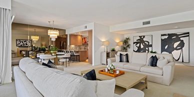 This project was an elegant refresh aimed at showcasing what a light, restrained renovation can achieve. With kitchen and all three bathrooms refaced, high-impact paint selections, and updated fixtures, this 2,445 sq ft condo was repositioned for resale in under 9 months. The staging leaned modern coastal, appealing to buyers seeking effortless desert living with subtle luxury.